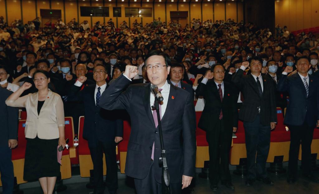 大会开始前,李家俊带领全体党员重温入党誓词,牢记初心使命,坚定理想信念,接续百年奋斗。