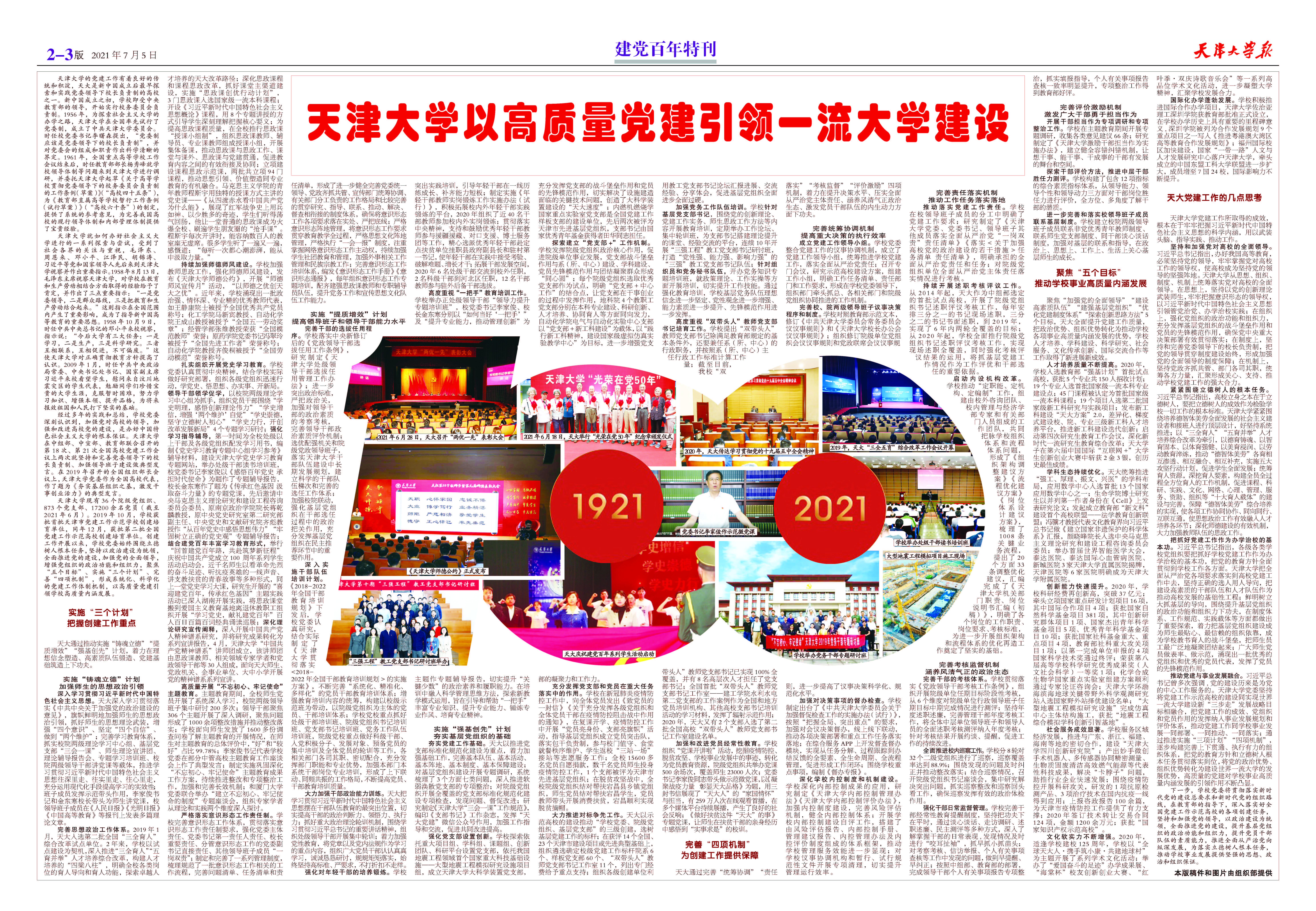 ●天津大学以高质量党建引领一流大学建设