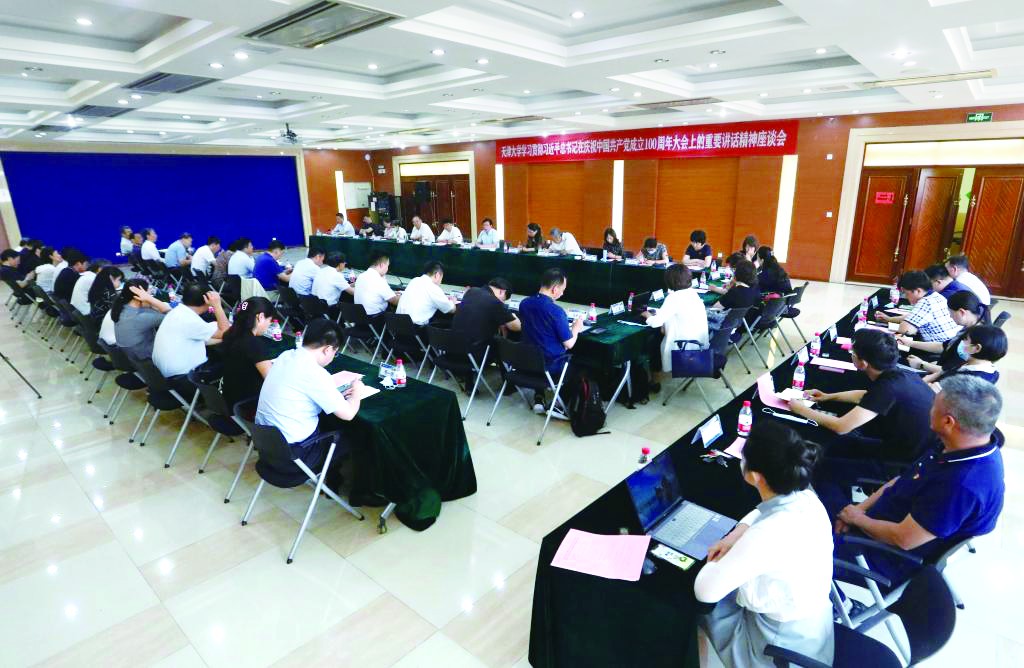 7月后,学校党委把学习贯彻“七一”重要讲话精神作为当前和今后一个时期的首要政治任务,发布了《中共天津大学委员会关于深入学习贯彻习近平总书记在庆祝中国共产党成立100周年大会上的重要讲话精神的通知》,切实把全校思想和行动统一到讲话精神上来。7月1日,全校师生集中收听收看了庆祝大会实况直播,共同见证了伟大历史时刻。7月3日,校党委常委会专题学习了习近平总书记“七一”重要讲话精神,颜晓峰教授以“百年大党开创民族复兴辉煌未来的政治宣言”为题作了辅导报告。7月9日,学校召开学习贯彻习近平总书记“七一”重要讲话精神座谈会。本学期开学以来,学校继续邀请理论名家,组织校内理论宣讲团作精品辅导报告26项,面向师生开展更加深入的理论辅导;积极开展理论研究阐释,围绕“七一”重要讲话精神,7月以来在《人民日报》《光明日报》《解放军报》等媒体发表理论文章10余篇。全校各级党组织通过理论学习中心组研讨、支部学习、宣讲培训等多种形式,广泛开展内容丰富、特色鲜明、针对性强的学习宣传活动。