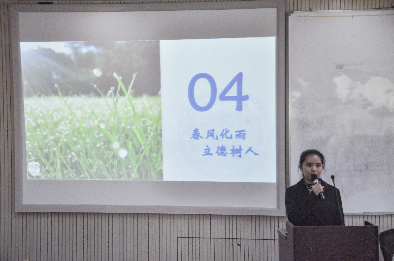 印邦炎教授青年时期,为了地下工作,曾三次放弃读重点大学的机会。改革开放以来,印先生积极投入到新中国教育事业的建设中,并将目光投向贫困学生。他引进“新长城自强社”项目,资助贫困学生,关切贫困学生日常生活,争取让同学们吃饱穿暖。不仅如此,印先生拿出自己的储蓄设立“早餐工程”,帮助更多的寒门学子解决吃早饭的问题。印先生用心、用情讲好每一节党课,致力于将家国情怀融入课堂。