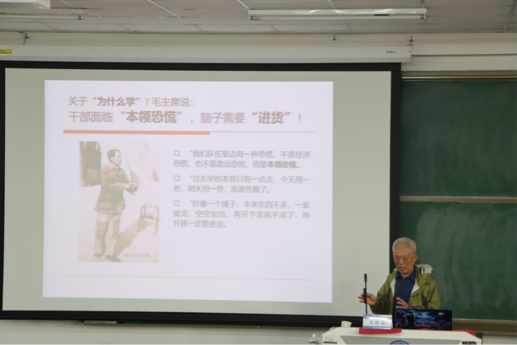 今年77岁高龄的王新农老师,作为校关工委理论组成员始终关心青年学生的成长。今年是建党100周年,全党开展党史学习教育,王老师很早就开始精心准备党课。此次党课是学校关工委“学党史”微党课报告团的首场报告,后续关工委老同志将面向全校青年师生按照党史学习教育的要求开展各种讲座、报告、座谈。