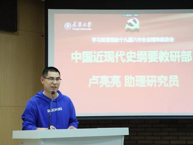 本站讯(通讯员 张鷟)为深入学习宣传党的十九届六中全会精神,推动学习宣传和研究阐释深入开展,进一步把思想和行动统一到中央部署和要求上来,11月19日,天津大学党委宣传部与马克思主义学院共同举办的学习贯彻党的十九届六中全会精神座谈会在33教学楼召开。宣传部部长吕静,副部长李嘉毅、刘一,马克思主义学院院长颜晓峰参加会议,与马克思主义学院全体师生党员和宣传部党支部全体党员共同展开学习和研讨。会议由马克思主义学院党委书记徐斌主持。与会师生围绕《中共中央关于党的百年奋斗重大成就和历史经验的决议》和习近平总书记关于《决议》的说明,交流学习体会,进行主题发言,并提出了抓实学习的目标任务和贯彻落实的工作着力重点。
