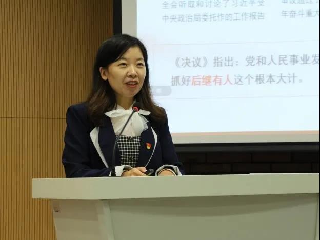 李丽副教授以《用党的百年奋斗史激励新时代青年爱国力行——学习党的十九届六中全会精神》为题进行发言。她认为,党和人民的事业发展需要一代又一代中国共产党人的接续奋斗,必须抓好后继有人这个根本大计。所以,我们既不能忘记昨天的苦难辉煌,做到以史为鉴,总结失败经验,又要无愧今天的使命担当,以更加昂扬的姿态迈进新征程。
