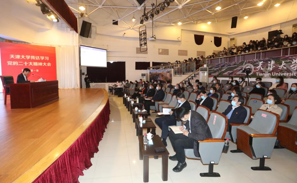 11月8日下午,首场巡讲报告会暨天津大学传达学习党的二十大精神大会在天津大学卫津路校区举行,党的二十大代表、第二十届中央候补委员、中国工程院院士、天津大学校长金东寒教授作首场报告。市委常委、市委教育工委书记王旭,天津大学校领导及两百余名师生代表参加报告会,会议由市委教育工委专职副书记孙志良主持。