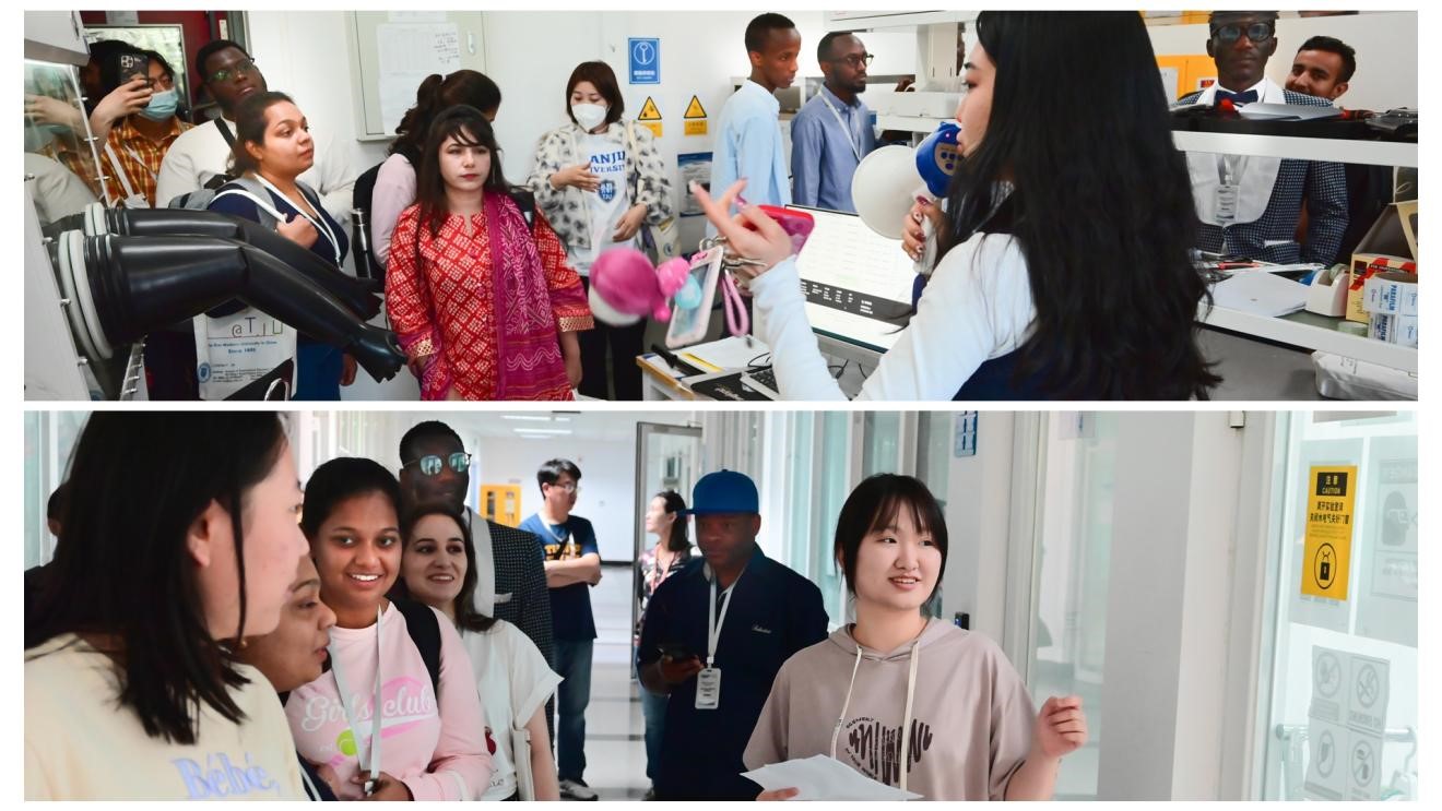 在学院和实验室参观环节,学生们先后来到分子+研究院和药学院,实地参观了先进的实验室仪器设备,了解了天大在围绕国家发展战略、扎实推进基础研究、促进学科交叉融合等方面所作的积极贡献。多名拟申请博士的国际学生在参观过程中表现出了浓厚的兴趣。