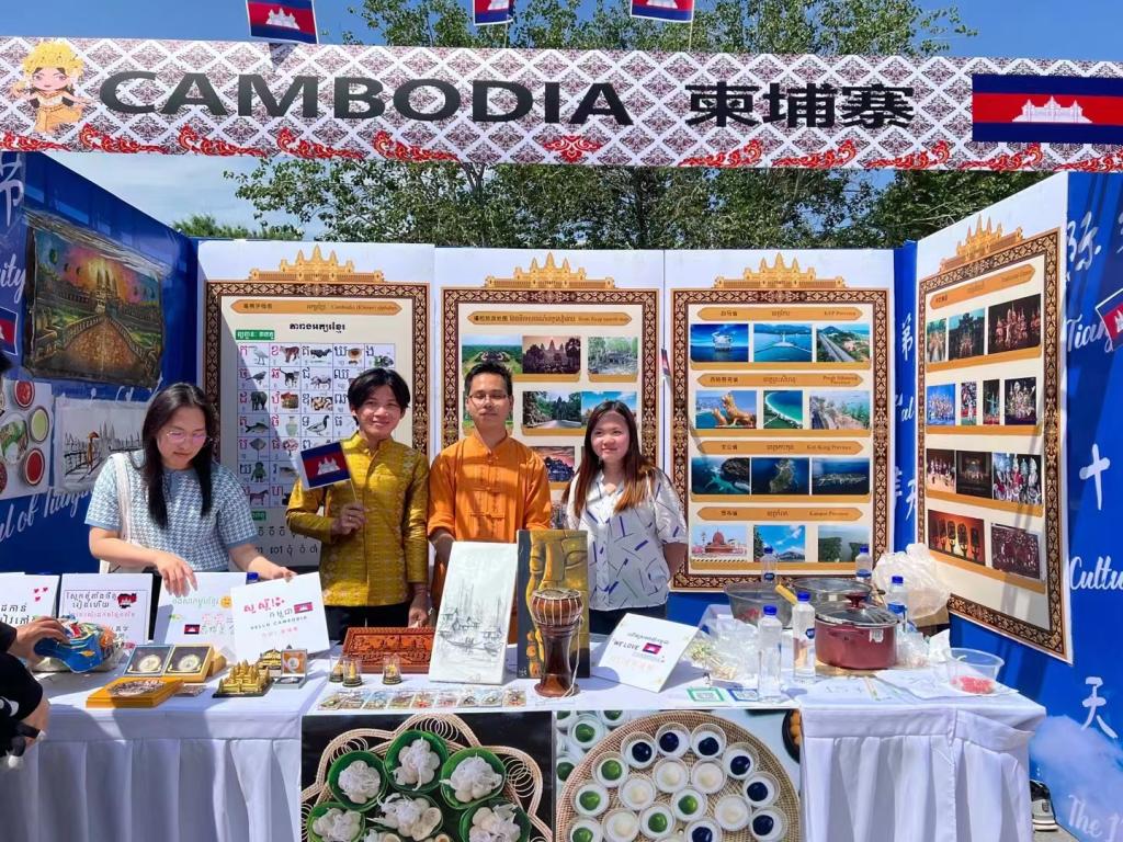 在文化展台,各国独特的工艺品、服饰烘托着浓浓的异域风情,各种传统工艺品精致有趣,各种风情图片令人耳目一新,让中外师生近距离感受了各国文化魅力和民族风情。