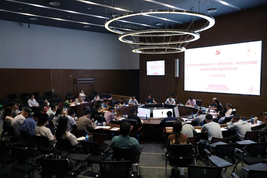 5月15日下午,学部中心组带头与天津大学科学技术发展研究院、建筑工程学院共同开展主题教育第三专题联合学习研讨,天津大学副校长王天友,学校党建督导员贡振宇,科研院、建工学院、智算学部党委理论学习中心组成员,建工学院港口党支部成员以及智算学部可视计算实验室第一党支部成员及部分师生代表等共计40余人参加会议。此次会议,在扎实推进新时代智算学部教育、科技、人才“三位一体”高质量协同发展;聚天下英才而用之,厚植爱国主义情怀,做有价值的科研;坚持“四个面向”、强化五个着力、践行六个坚持,深入探索天津大学的科技创新工作几个方面达成共识。大家一致认为,科技、教育、人才三位一体,高校作为三项工作的重要交汇点,要发挥高校的优势长处,深入推进高质量发展,要立足国家重大需求,不断推进人才培养与科学研究,为国家和社会发展做出天大贡献。