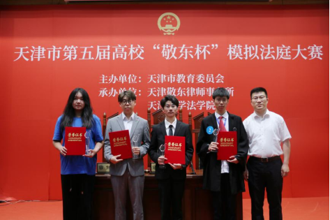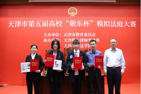 5月27日,天津市第五届高校“敬东杯”模拟法庭大赛决赛在卫津路校区科学图书馆二层报告厅成功举办。出席本次比赛的嘉宾有:天津市教育委员会副主任徐广宇,天津大学党委常委、宣传部部长杨欢,天津大学法学院院长孙佑海,天津大学法学院党委书记李明,全国人大常委会法工委办公室人事处处长、天津市和平区小白楼街道党工委副书记(挂职)张晓莹,教育部全国青少年法治教育中心办公室主任张薇薇,天津市教育委员会法制处处长邢建涛,天津市教育委员会法律顾问、市教育科学研究院教育法治与评估研究所所长、研究员方芳,天津市教育委员会法律顾问、天津唯睿律师事务所主任袁宏伟,天津敬东律师事务所主任罗承菊,天津敬东律师事务所副主任王静等。