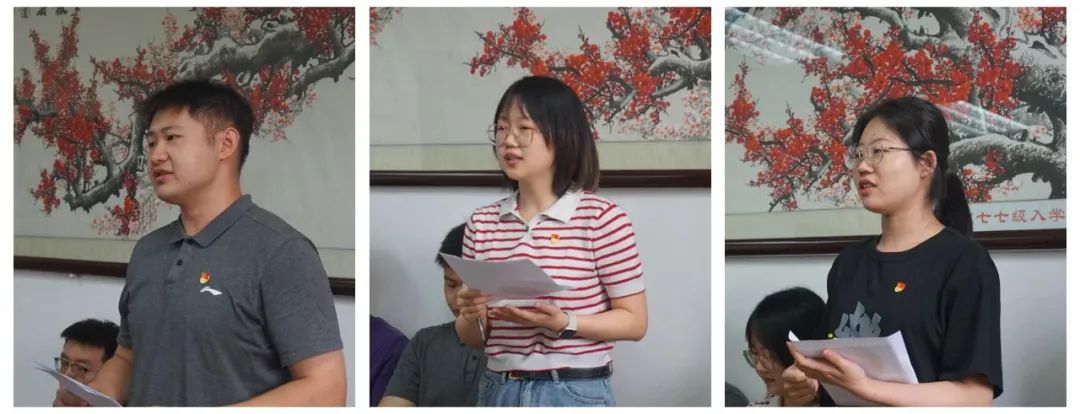 黄明昊、黄新欣、王倩雯等学生党员围绕教育、科技、人才,从科学家精神、科技自立自强等方面分享了自己的学习体会,并表示作为高校学生要勇于接过时代的接力棒,更加热情地投入到科研学习中去,为国家贡献自己的力量。
