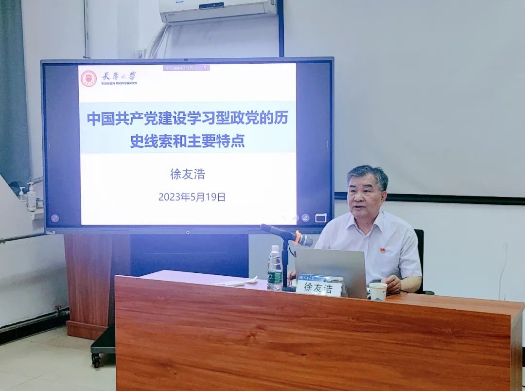 徐友浩老师围绕中国共产党建设学习型政党的历史线索、主要特点、历史的启示和建议等三个方面,详细阐述了建设马克思主义学习型政党的重要性。他讲道,当下正值“百年未有之大变局”,同志们要围绕党的二十大报告中“坚定不移全面从严治党,深入推进新时代党的建设新的伟大工程”这一任务,全面学习、全面把握、全面落实党的二十大精神,深入开展学习贯彻习近平新时代中国特色社会主义思想主题教育,将党的优良传统和红色基因一代代传承下去,将其转化为立足新起点、奋进新时代的强大精神动力,为全面推进中华民族伟大复兴积极贡献力量。