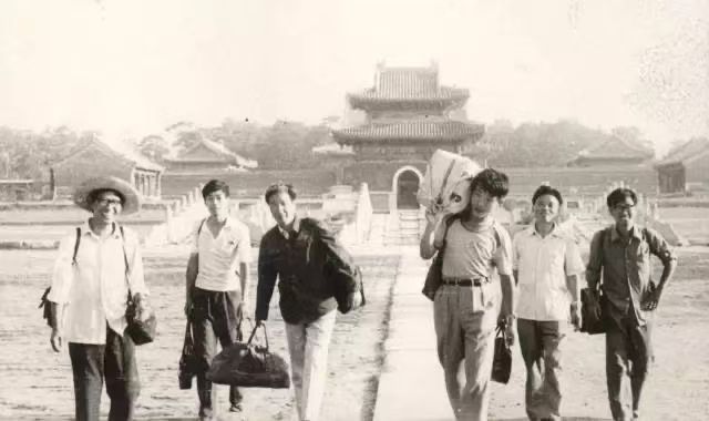 王其亨带领学生测绘西陵(左一为王其亨,右三为崔愷)