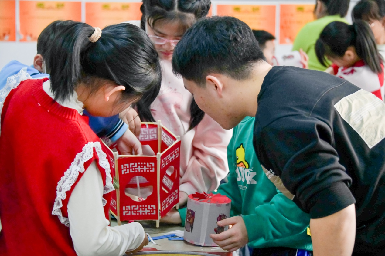“缘起天麟,雪梦长青”实践队来到吉林省柳河县长青小学,以非遗春节为主线,弘扬优秀传统文化,赓续中华文脉。围绕理想信念、氛围营造、文化故事、手工艺术、科学探秘、光影变换等六个维度来精心筹备,与同学们共赴春节文化盛宴,探寻春节这一非遗文化的前世今生、千面百态,体会文化的温度与传承的力量。从手工艺术到科学探秘,从诗词赏析到传统习俗,孩子们用稚嫩的双手触摸历史的脉络,用纯真的心灵感悟文化的魅力。