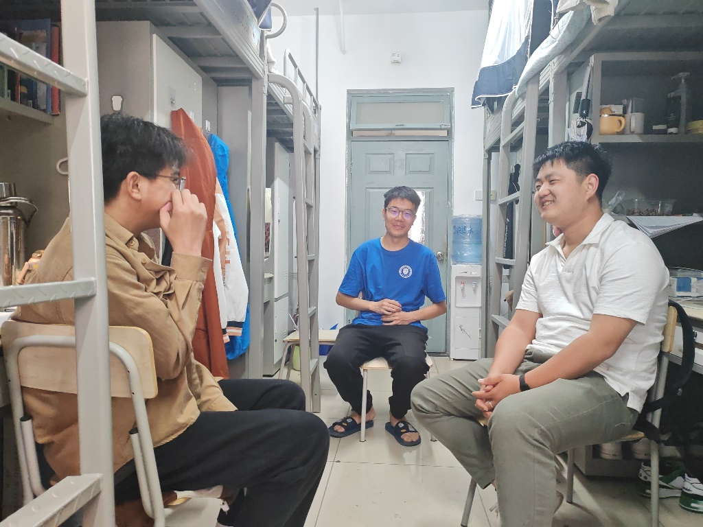 完成了跟几位同学约定的“羽毛球局”后,自动化学院23级本科生辅导员张增其又来到学生宿舍,与在校同学们进行交流。“没回家或者出去玩吗?”“导儿,您假期也没休息啊”,张增其与同学们就假期安排、专业分流、新专业及分流后班级宿舍安排等近期学生们关心的问题进行了交流,提醒大家利用假期调整自己的学业任务,适当休息娱乐,以应对接下来的学习。学生在哪里,辅导员就在哪里,学生永远是辅导员工作中的最大动力。