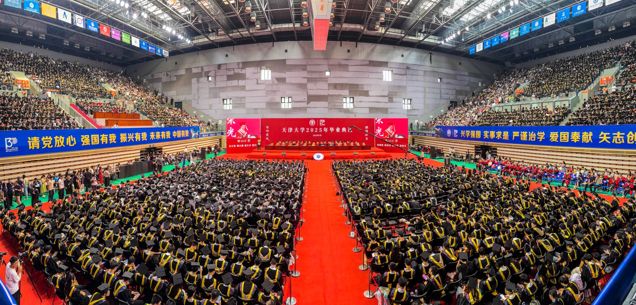 7月5日,天津大学在卫津路校区体育馆举行2025年本科生毕业典礼暨学位授予仪式,天大师生与亲朋好友共享毕业的喜悦。
