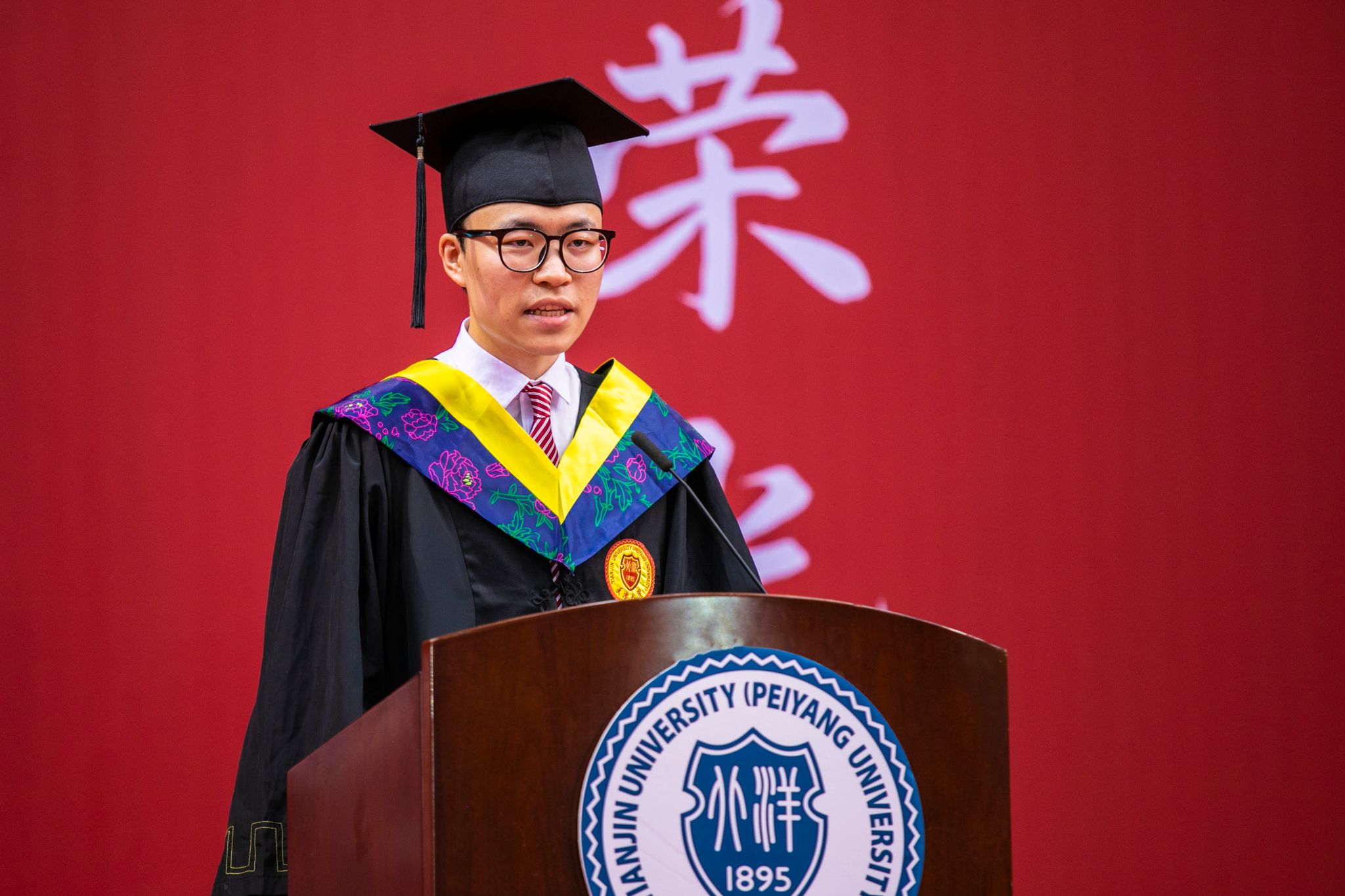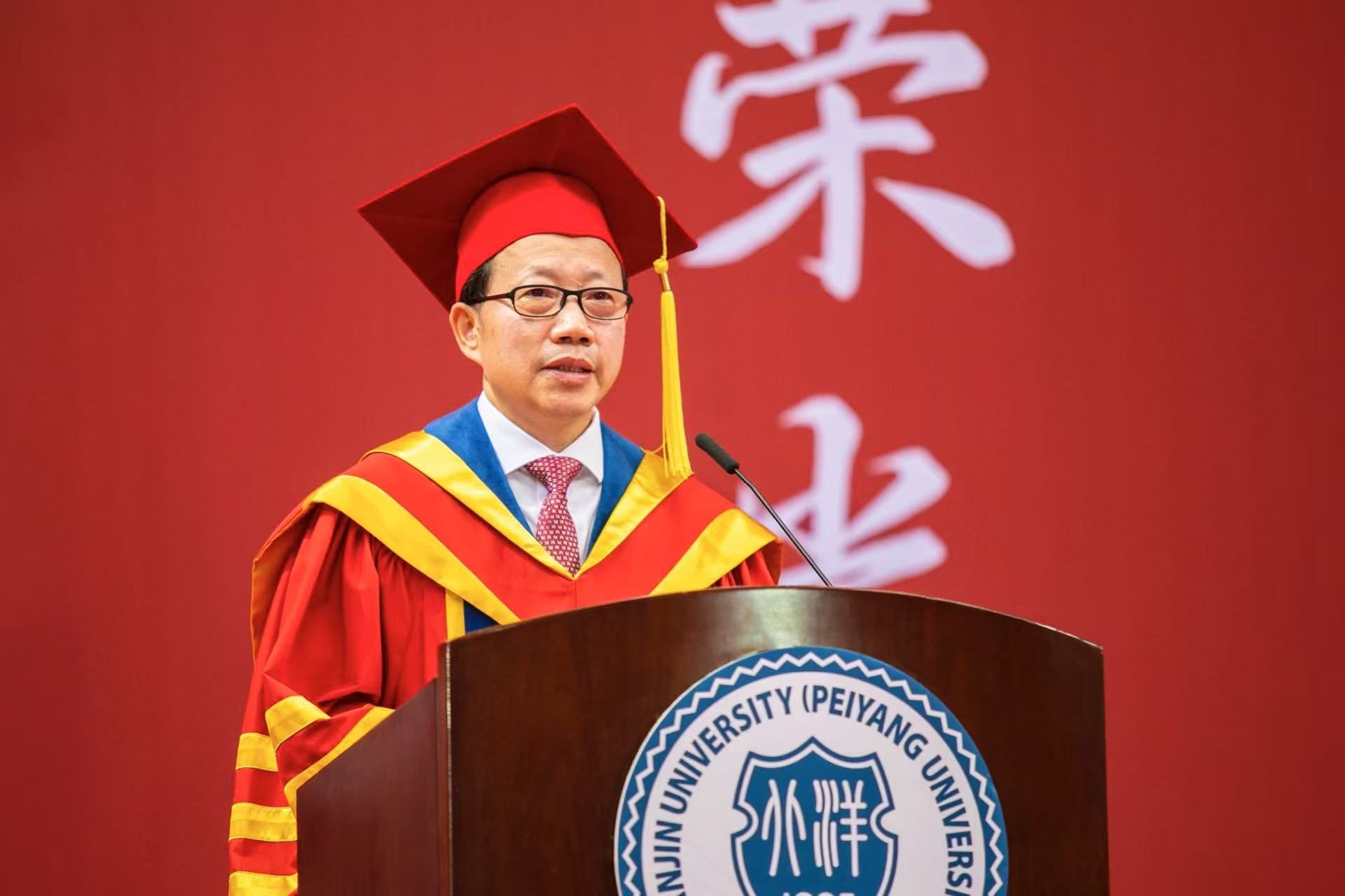 天津大学在津校领导、部分院士专家、各学院领导、学位评定委员会委员、教师代表、辅导员以及机关部处负责同志参加。典礼由天津大学党委常委、副校长李斌主持。