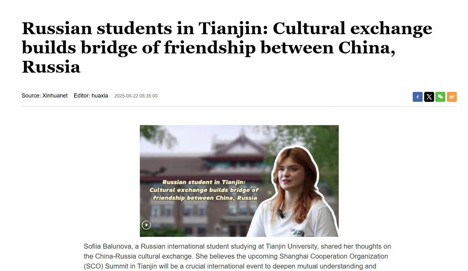 新华社英文视频报道:天津大学留学生索菲雅分享中俄文化交流故事