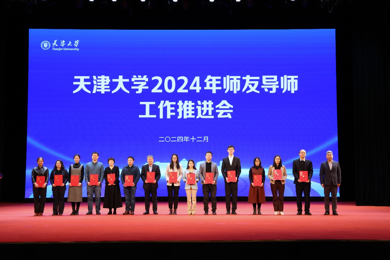 雷鸣宣读了2024年天津大学杰出师友导师和优秀师友导师的表彰决定,李炜、刘秀国依次上台为荣获杰出师友导师提名奖和优秀师友导师荣誉称号的教师代表颁发荣誉证书。2024年,全体师友导师贯彻落实党的二十大精神和全国教育大会精神,大力弘扬教育家精神,用心用力用情助力学生成长成才,涌现出一批师德师风高尚、业务能力精湛、育人成效显著的先进典型,十位教师获评杰出师友导师,十位教师获评杰出师友导师提名奖,211位教师获评优秀师友导师。