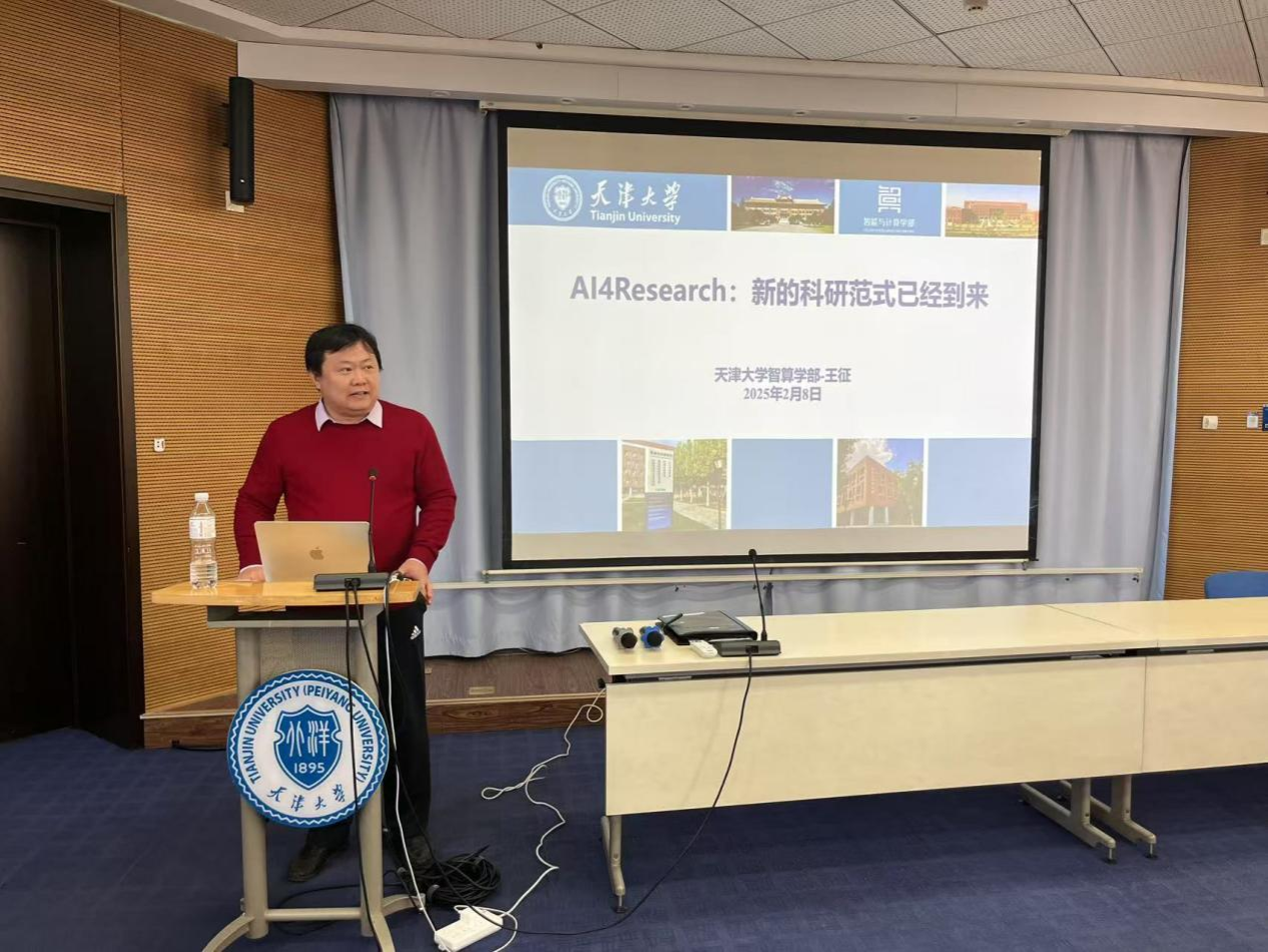 王征教授以“AI4Research:新的科研范式已经到来”为主题,聚焦大模型如何重构科研全流程。他结合团队实践经验,演示了DeepSeek在论文写作、文献分析、实验设计等环节的高效赋能,并介绍了基于大模型的“短视频翻转课堂”等教学创新模式。王征指出,人机协同将推动科研从“经验驱动”转向“数据智能驱动”,助力研究者聚焦核心科学问题的发现与解决。