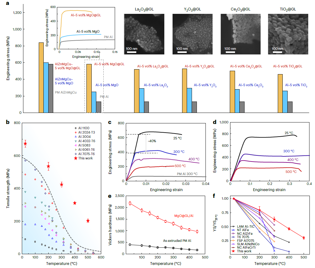 航空航天、交通运输等领域提速减重的重大需求对轻质金属材料的耐热性能提出了更高要求,传统铝合金由于高温下析出相粗化力学性能急剧下降,300℃以上服役性能已达瓶颈,300℃抗拉强度小于200兆帕,500℃抗拉强度则小于50兆帕。对于当前航空航天等重要领域最为关心的300~500℃温度区间,铝合金使役时出现的力学性能迅速衰退成为大动力/大功率工作条件下制约结构设计、影响服役安全的关键短板。