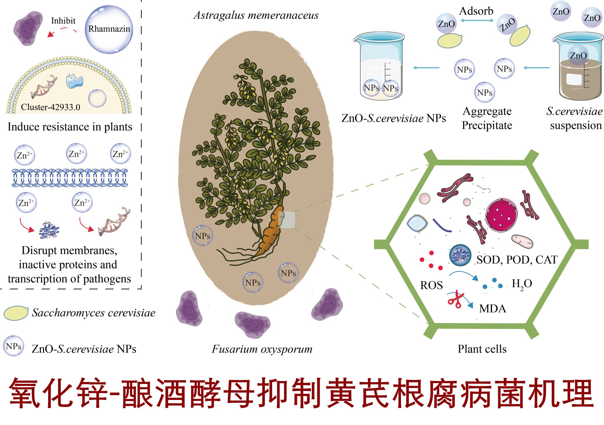 国家中药材产业技术体系岗位科学家、天津大学医学部药学院高文远教授团队针对黄芪根腐病问题开发出新型生物抑菌剂。该抑菌剂不仅能作为抗真菌剂抑制根腐病,还能促进黄芪生长代谢。通过机理研究发现,这种新型抑菌剂可通过抑制尖孢镰刀菌生长基因、刺激黄芪产生抑菌成分、激活黄芪抗性基因等方式发挥抑菌作用,可作为传统农药的替代品,在植物保护中具有巨大的应用潜力。
