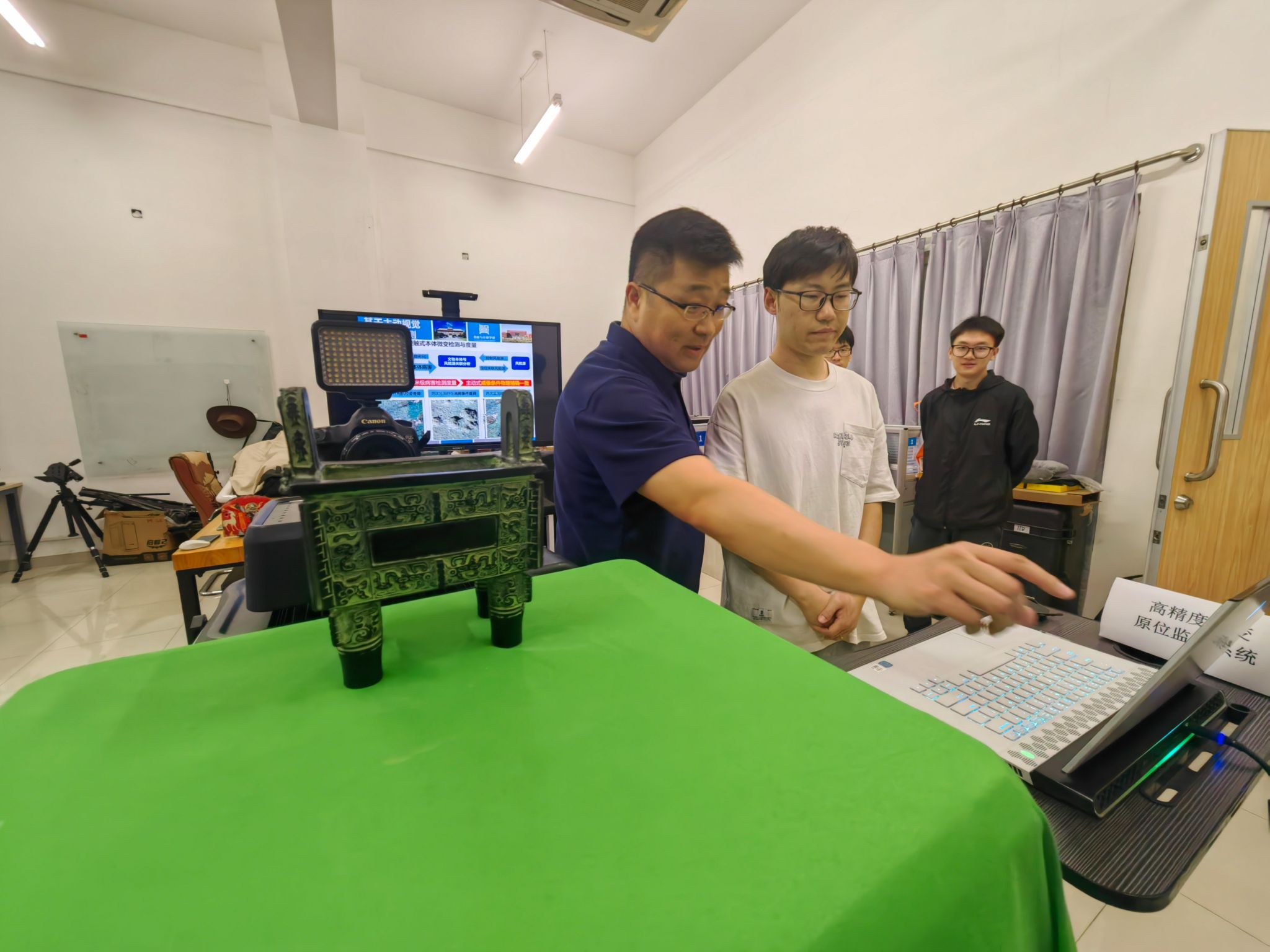 以青铜器为例,这一技术需要从器身上精准采集特定的点位作为“物纹”信息,且在展览结束后,要能准确找到当初采集“物纹”的精确位置,并进行自动比对鉴别。