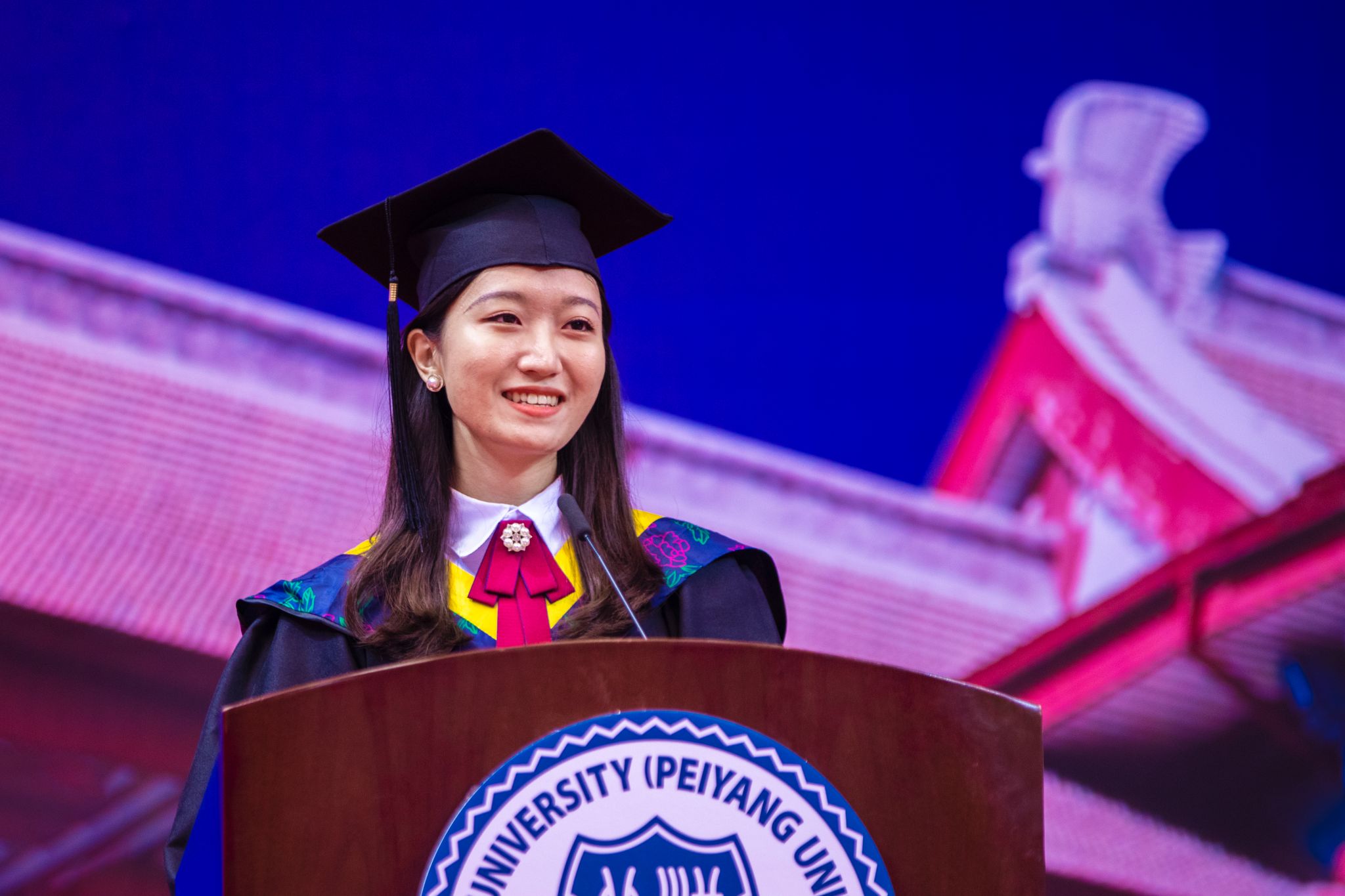 “学在天大,我们收获的不仅仅是一段段难忘的时光,更是‘立天大志、成天大事’的家国情怀,是从懵懂到成熟的蜕变和自信。校训激励着我们向下扎根、向上生长,书写天大人挺膺担当的青春篇章。” 建筑学院的生馨蕾作为毕业生代表发言,向母校和师长、亲友致以真诚的感谢最崇高的敬意。生馨蕾分享了自己在天津大学求学求知的难忘回忆。怀着对城乡的热爱,她选择继续在天大攻读博士学位,立志用专业所学服务海洋强国战略,发挥新时代青年规划师的引领示范作用。“家在天大,志在天下,无论走到哪里,家国情怀都是我们天大人不变的誓言!”