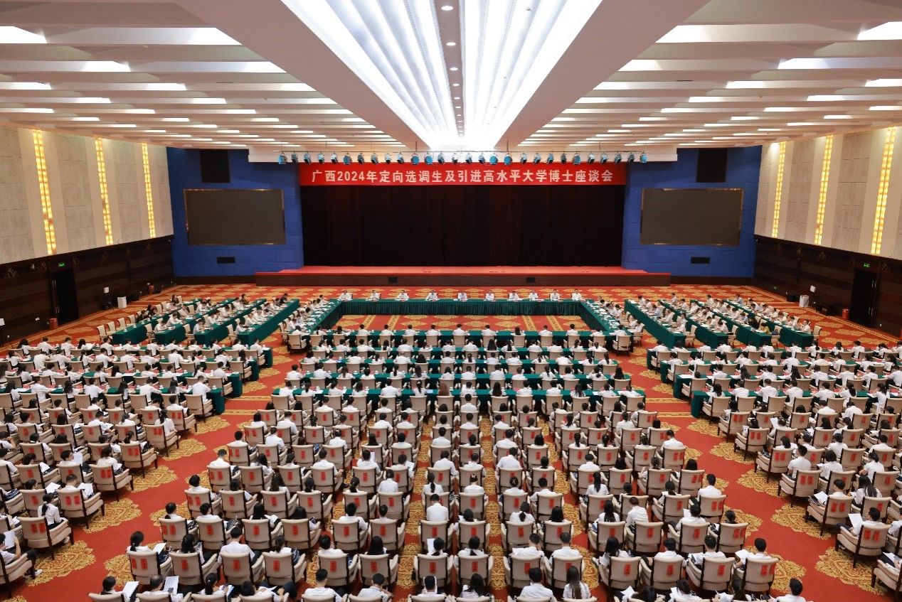 在随后举行的广西2024年定向选调生及引进高水平大学博士座谈会上,广西壮族自治区党委常委、组织部部长王维平与高校负责人、选调生及引进高水平大学博士代表进行座谈。广西壮族自治区人民政府副主席、党组成员李常官主持座谈会。