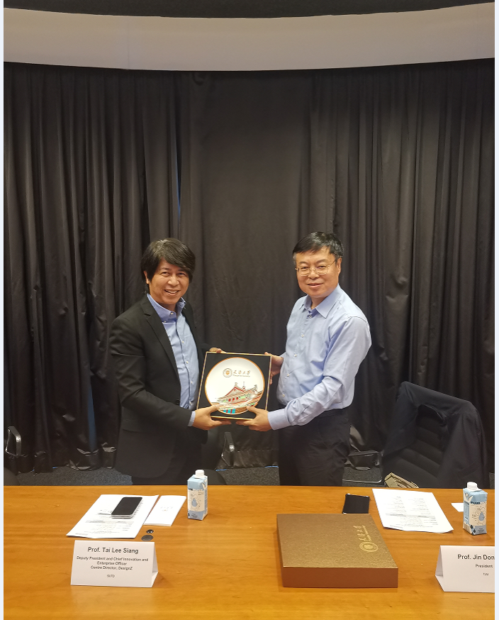 访问新加坡科技设计大学期间,副校长及首席创新与企业官戴礼翔、副教务长洪礼祺与我校代表团会见会谈。参加会谈的有新加坡科学院院士、工程院院士杨杰圣教授。戴礼翔副校长对金东寒一行来访表示欢迎,指出新科大高度重视与天津大学的战略合作,希望两校进一步深化在可持续发展领域的教育与科研合作。金东寒校长对此表示感谢,他表示,近年来依托中新生态城和杨杰圣院士的桥梁作用,两校就在绿色发展、微电子等领域拓展深化合作进行了多轮探讨,达成重要共识,希望能够加快项目的落地,携手打造高水平教育、科研合作平台。随后,双方就工程教育和创新教育领域的合作展开热烈讨论,各自分享了在教学理念、课程设置、实践教学等方面的经验和成果。双方一致认为,工程教育应紧密结合产业发展需求,了解趋势与需求,调整教学内容和方式,产业界应积极参与工程教育,提供实践机会和就业渠道,共同培养学生的实践能力和创新精神。双方还就共同开展科研项目、互派教师交流、学生联合培养等方面达成意向。双方同意,将进一步加强合作,依托中新生态城,共同推动工科教育和创业教育的发展,培养更多优秀的工程技术人才。随后,洪礼祺副教务长陪同代表团参观了图书馆、42 Singapore计算机实验室、数字制造与设计中心。