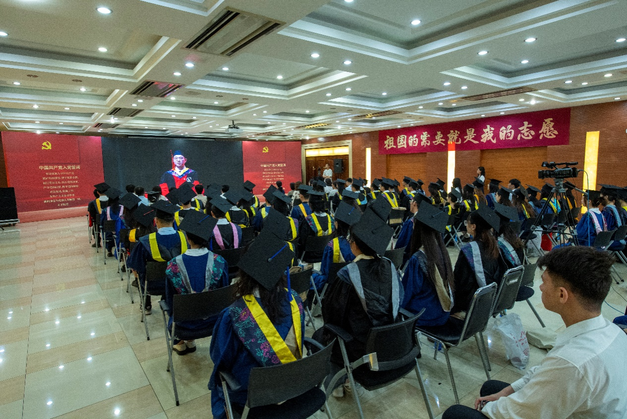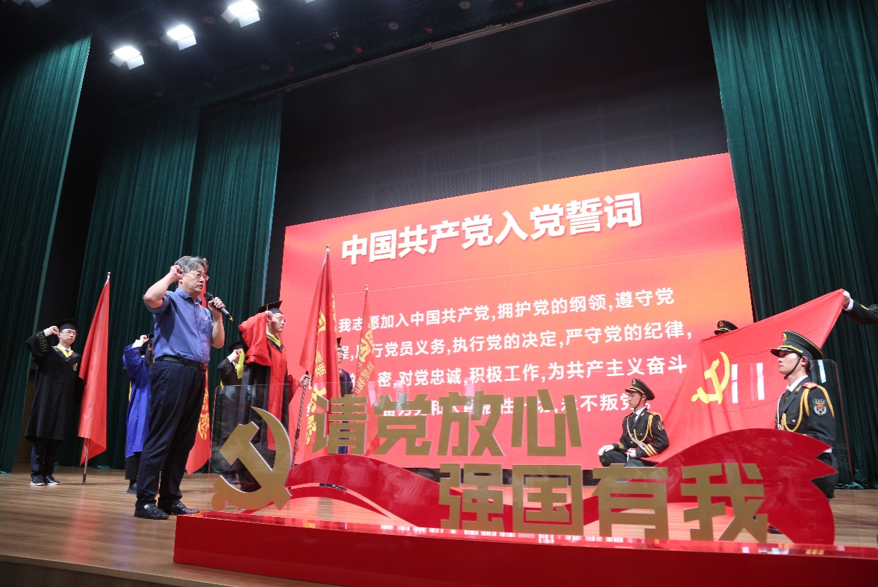 不忘初心,牢记使命。韩庆华带领全体毕业生党员代表重温入党誓词。毕业生党员代表们以“请党放心,强国有我”的铮铮誓言,掷地有声地表明自己将牢记初心使命,坚定理想信念,不负时代,不负韶华,不负党和人民的殷切期望。